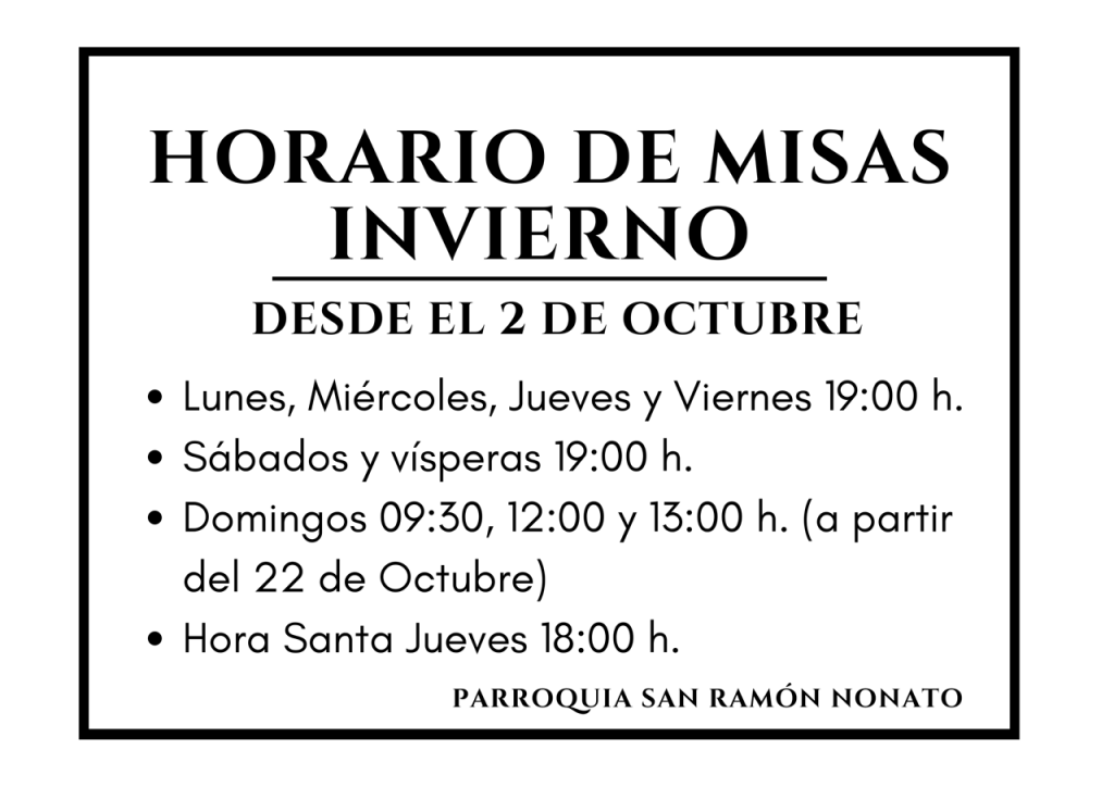 Domingos: 9:30, 12:00 y 13:00